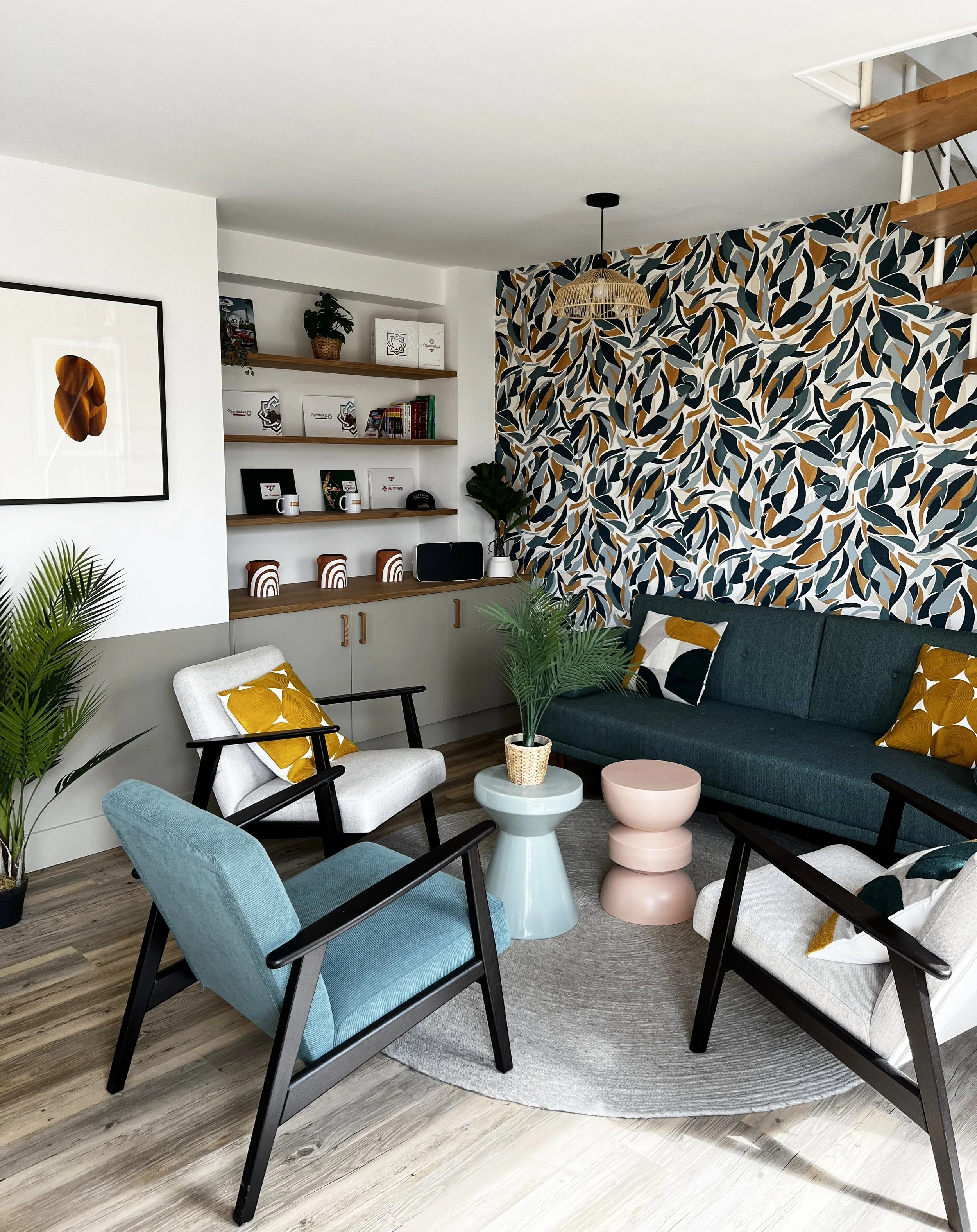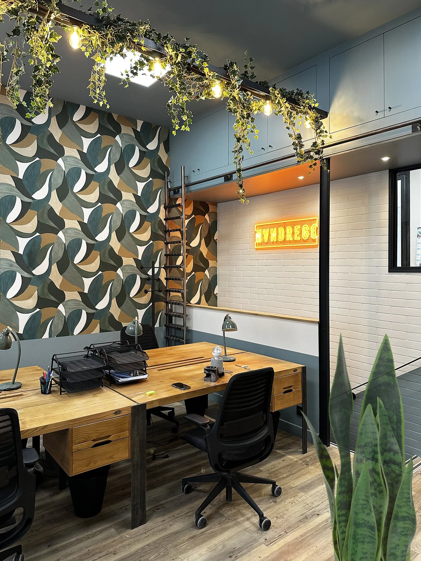 « Un bureau pensé comme un lieu de vie, où l’esprit jungle rencontre l’élégance graphique pour réinventer le quotidien du travail. »