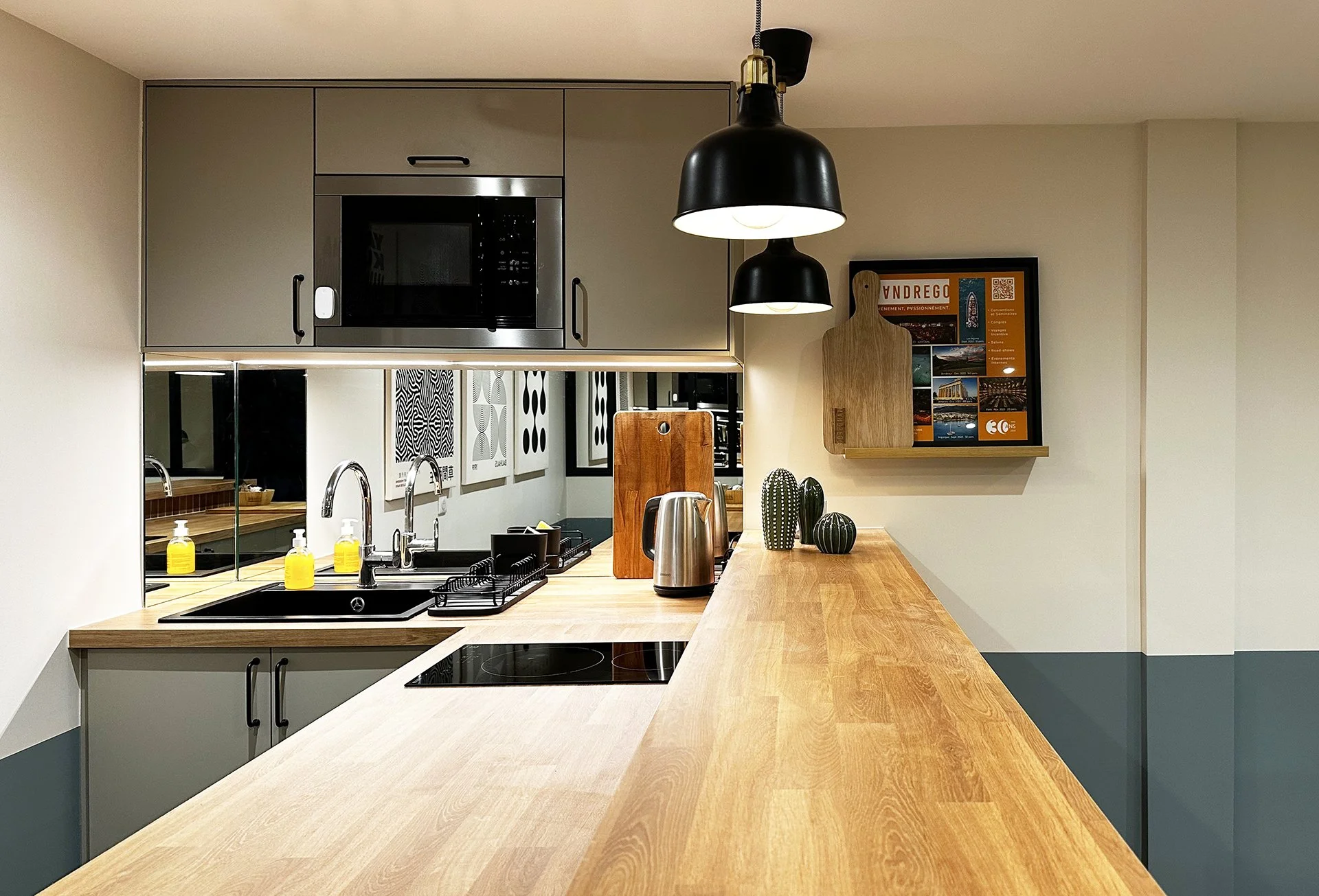 Pensé comme un véritable lieu de vie, l’aménagement casse les codes classiques des bureaux pour adopter ceux d’un appartement contemporain, chaleureux et immersif. Le style se distingue par des touches végétales audacieuses, une serre transformée en bureau, des papiers peints graphiques d’éditeurs, des matériaux nobles et un soin particulier porté à chaque détail décoratif. Un environnement singulier, aussi inspirant que convivial.